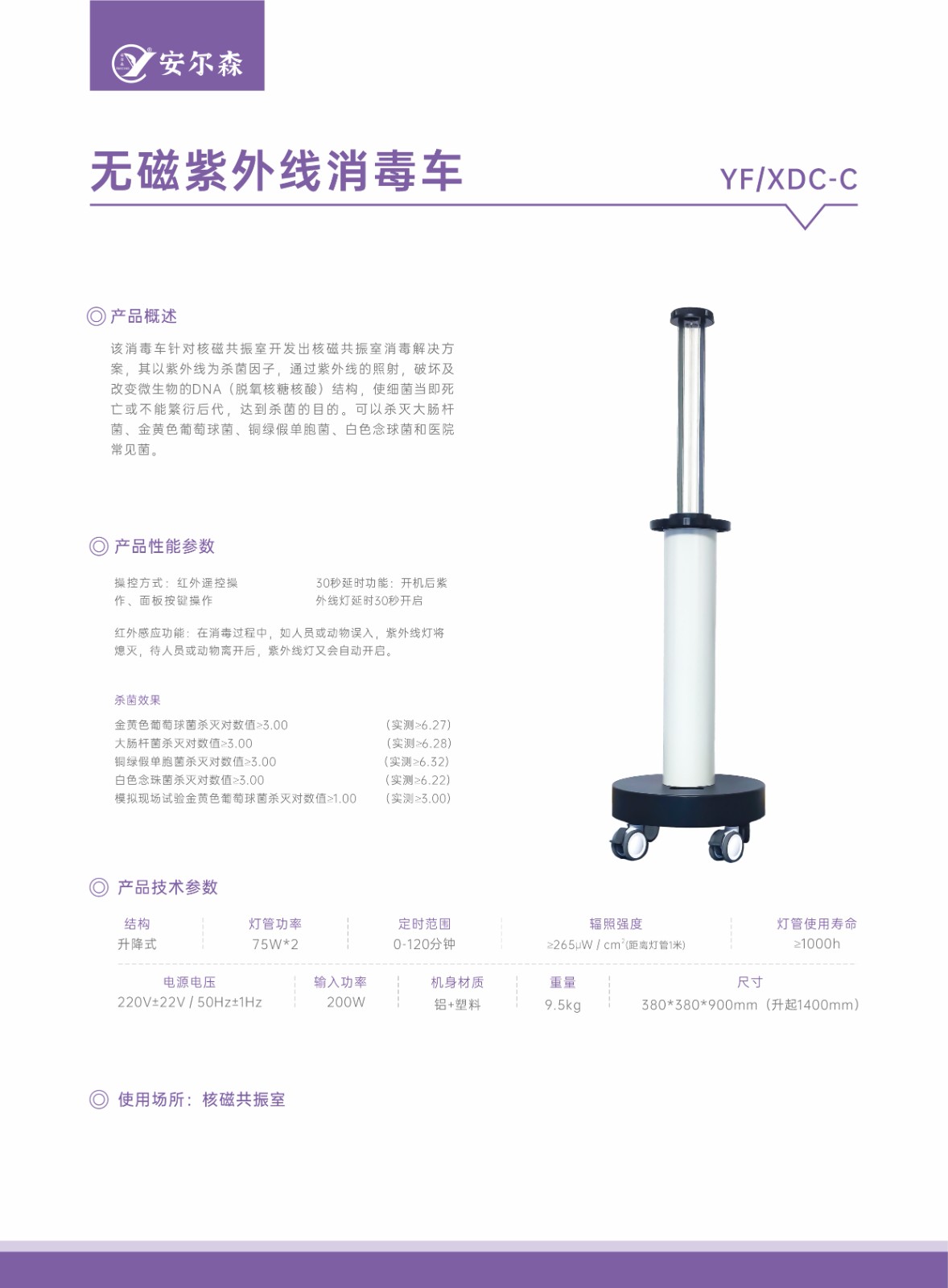 安爾森牌YF/XDC-C型無磁紫外線消毒車